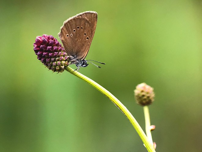 Ik bezoek bijvoorbeeld echtparen die hun gouden of diamanten bruiloft vieren. In plaats van een algemeen praatje te houden, probeer ik mij echt te verdiepen in de mensen. Ik vraag hen een voorwerp te kiezen dat iets vertelt over wie ze zijn en daar praten we over. Dan raak je diepere lagen en ontstaat er een waardevolle verbinding. Het voorwerp gaat ook mee op de foto. Dat levert een levendiger beeld op dan een standaard staatsieportret. Ook wat de aankleding van het gemeentehuis betreft hebben we nagedacht over de inbreng van inwoners. We hebben alle kunst die er was de deur uit gedaan en vervangen door prachtige afbeeldingen van natuur rondom Roerdalen. Zoals bijvoorbeeld deze foto van het donkere pimpernelblauwtje, een zeldzame vlinder die in Nederland alleen in Roerdalen voorkomt. |